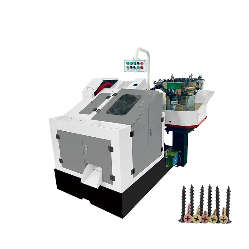 Esta máquina laminadora de rosqueamento tipo alimentador vibratório com caixa de engrenagens é um dos produtos da fábrica TAICHUANG, usa um alimentador vibratório para guiar as peças de trabalho para a zona de laminação em uma sequência contínua e organizada. A formação da rosca é concluída por meio de laminação a frio, onde matrizes alinhadas com precisão moldam o perfil da rosca sem cortar o material.